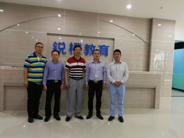 5月24日,bv伟德官网党总支书记白成良、学工办主任刘友洪和中文系党支部书记吴立友一行到bv伟德官网优秀创业校友杨小龙校长创办的锐橙教育洽谈学生就业事宜。
