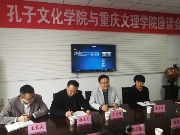 为弘扬中华传统文化,倡导经典阅读,提高大学生人文素质,本月14日,曲阜孔子文化学院颜廷淦院长、彭爱英老师以及西南分院张馨尹院长、重庆纳德集团副总经理陈国强一行莅临bv伟德官网开展合作交流。学院院长李天福、党总支书记白成良、副院长李芹燕、院长助理王长武参加了座谈交流活动。