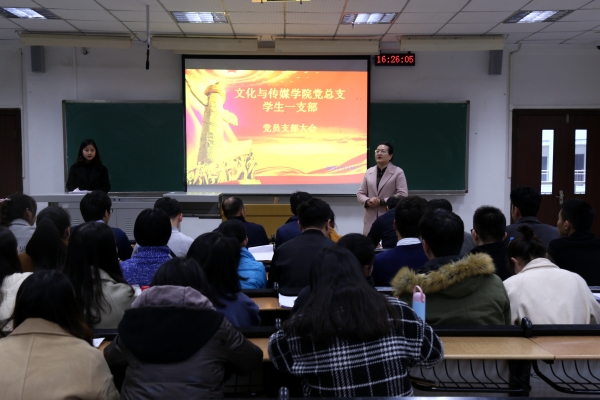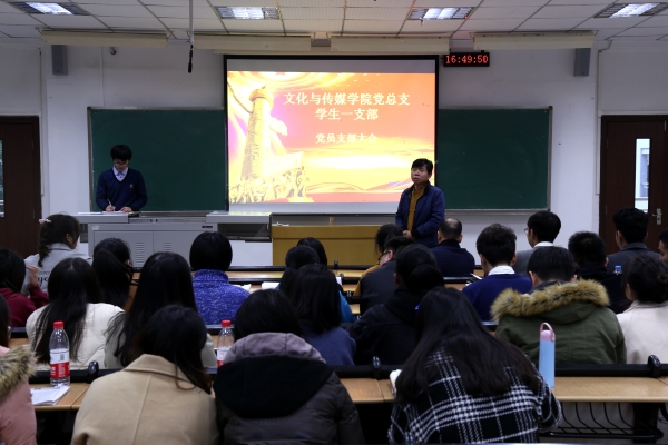 2018年11月14日下午4:30,文化与传媒学院党总支学生一支部2018年下半年党员发展大会在知津楼D201顺利召开,文化与传媒学院党总支学生一支部全体党员、预备党员、发展对象和发展对象的入党介绍人参加了此次会议,本次会议由支部书记张雪主持。