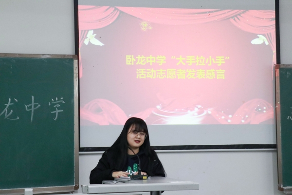 随后,不同志愿活动代表们发言。留守之家活动代表周洋娟提到自己在志愿过程中体会到了孩子们的童真,寻找到自我价值。播音训练代表人闫思颖回忆起去卧龙中学培训的经历,感谢这个活动给予了她帮助他人的机会和施展才华的平台,并表示期待后续活动。课业辅导活动代表黄禛杙呼吁志愿者们多点耐心,真诚交流,与孩子们愉快相处。创业实践部干事姚乐怡感谢了学院的老师和学长学姐对志愿活动的支持,而她自己也在这个活动中收获满满,得以成长。学生会主席王冠则希望志愿者选择坚持,准备充分,以给孩子们更有意义的陪伴。创业实践部干部罗孟莹代表主办部门表达了对学院、老师、志愿者支持的感谢,并表示“大手拉小手”志愿活动会不断改进,未来更佳。会上,雷彩翎、王怀志等志愿者提出问题,刘友洪及创业实践部负责人积极回应问题,提出了相关解决方案。