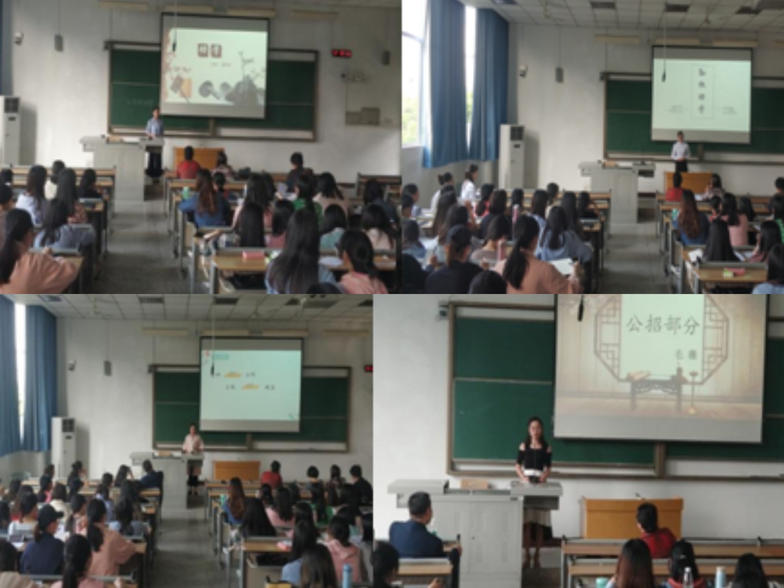 2015级汉文师范实习汇报结束后,又马上开始进行2016级汉语言文学师范专业领航课试讲,2016级学生代表李柚君、余文华和解红英同学从说课和讲课两部分,依次展示他们的试讲。