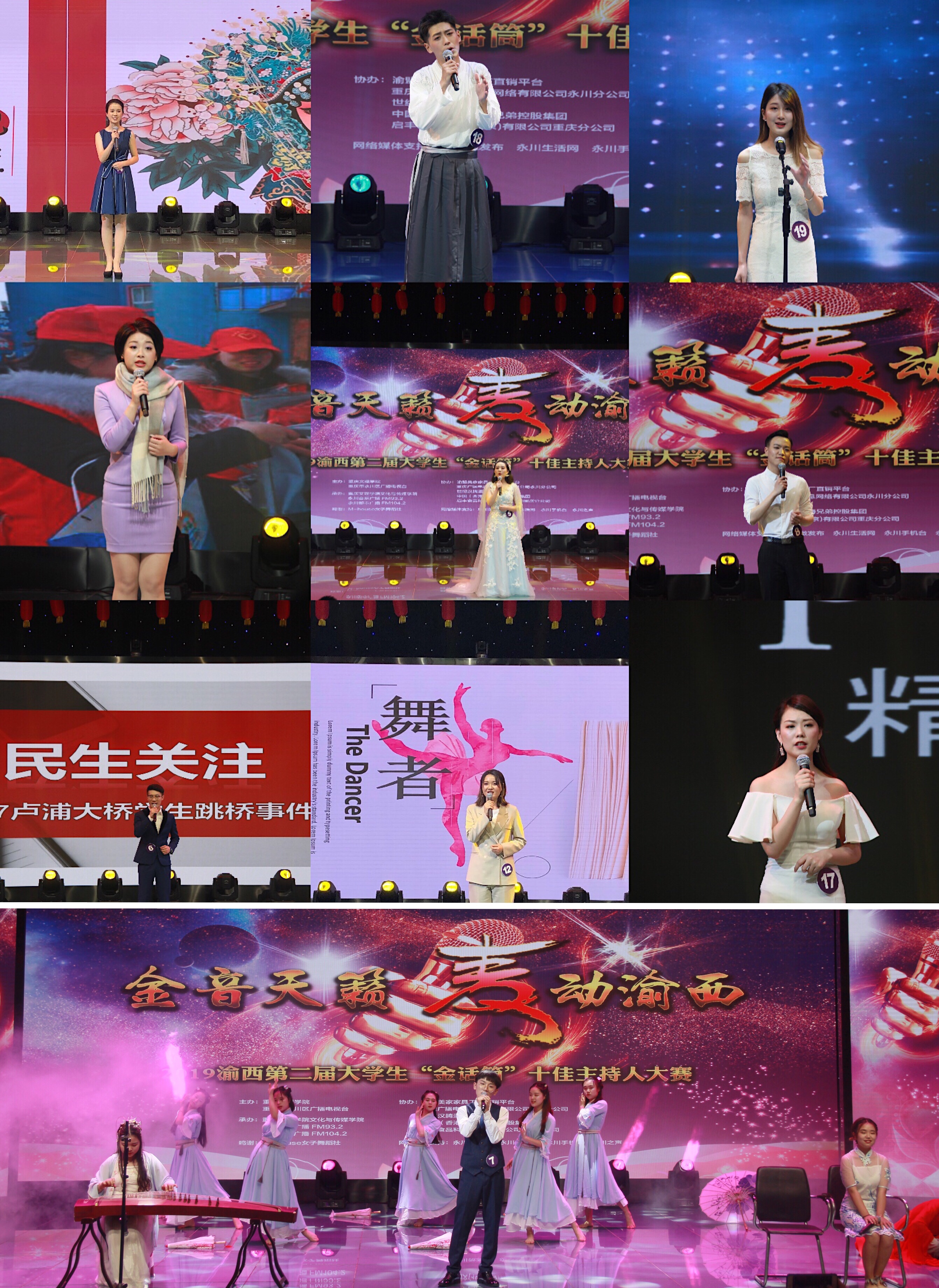 比赛现场进行全球直播,共分为风采展示、个性主持、才艺展示和话题评述四个环节。风采展示,来自渝西片区高校的20名选手依次在聚光灯下展现自我;个性主持,话题涵盖民生服务、文化、新闻评论等多个方面;才艺展示,选手多才多艺惊艳全场;话题评述,三位晋级选手展开了一场别开生面的即兴主持。经过四轮对决,重庆人文科技学院杨阳,bv伟德官网易芳、bv伟德官网教育学院王虹懿分别获得“铂金话筒”、“金话筒”、“银话筒”称号;bv伟德官网谭寅卓、刘璐,重庆人文科技学院方梦玲等同学获得“十佳主持人”称号;重庆交通大学张婧、重庆大学城市科技学院周彦宏、重庆师范大学涉外商贸学院邓世渝、重庆水利电力职业技术学院于忠秋、重庆城市职业学院唐一航、重庆传媒职业学院熊显兰等同学获得“优秀主持人”称号;重庆财经学院罗喜月获得“最佳上镜奖”;重庆工程学院潘春全获得“最佳人气奖”。