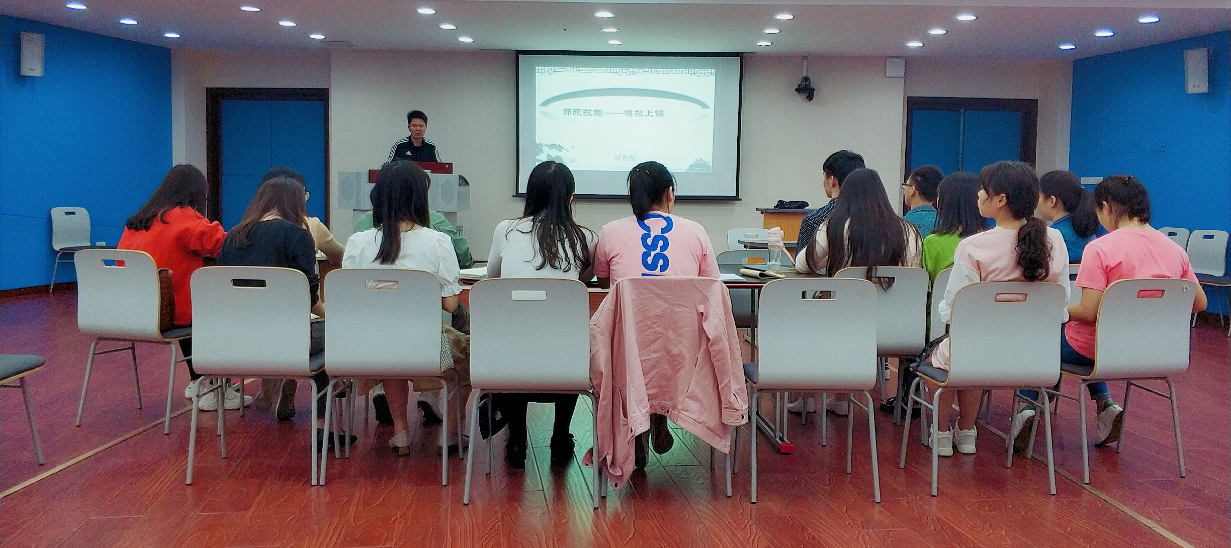 此次培训由刘光明老师做讲课训练。是集中培训的第二场,刘老师根据讲课比赛的相关评分标准,细心的为大家讲解了讲课各部分的具体要求,同学们获益匪浅;同时刘老师鼓励大家调整状态,积极准备比赛。