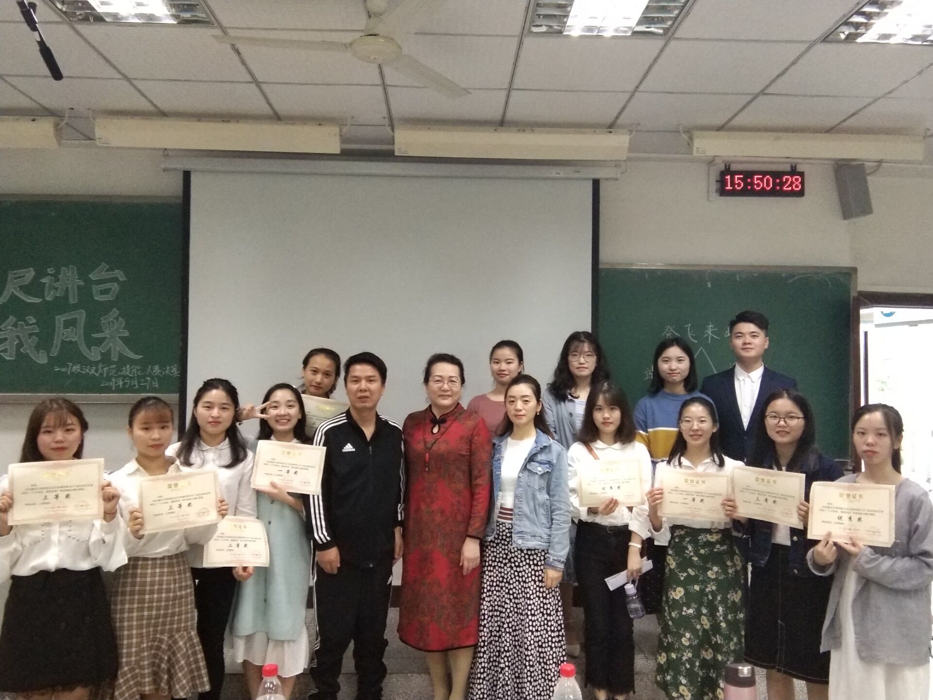 为进一步增强bv伟德官网师范生基本技能的掌握和创新,彰显师范生的特色,强化学生教学技能,5月29日,由重庆bv伟德源自英国始于1946教学部主办,文化与传媒学院中文系承办的2017级汉语言文学师范专业“三尺讲台,展我风采”师范技能大赛决赛成功在知津楼D205举办。本次比赛由语文教育教研室主任李东平、刘光明老师以及刘海燕老师担任评委,2017级汉语言文学师范专业的全体同学观看了本次比赛。