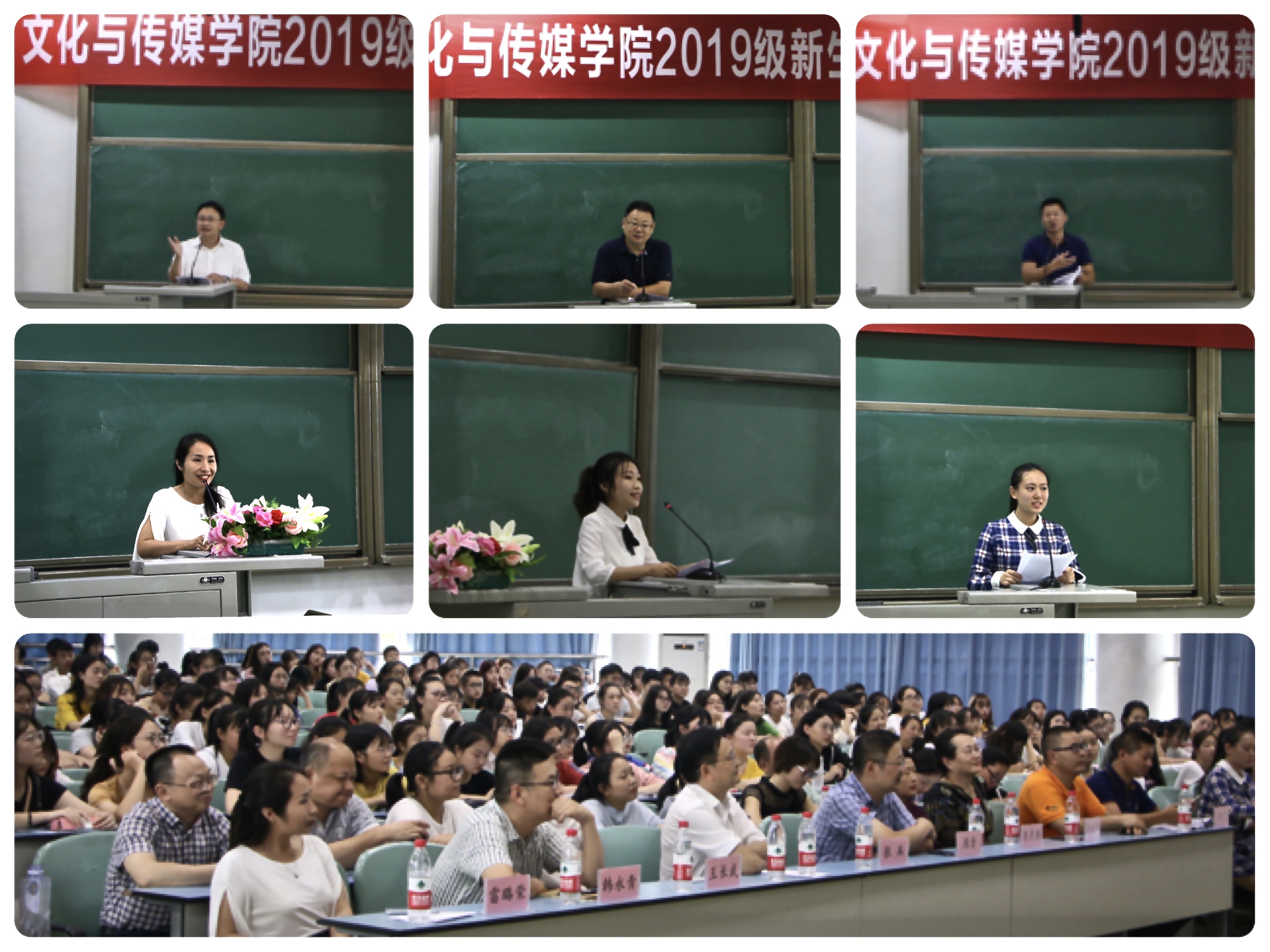 丹桂飘香、又喜迎建国70周年大庆独特时节,9月9日下午,文化与传媒学院2019级新生开学典礼暨入学教育在知津楼一阶隆重举行。bv伟德官网党总支书记、院长李天福,副院长李芹燕,院长助理王长武,92级校友、重庆作家协会副主席、知名网络作家张兵,党政办、教学办、学工办、党支部书记、专业教师代表、全体辅导员以及2019级全体新生参加了开学典礼。典礼由院党总支副书记邱飞主持。