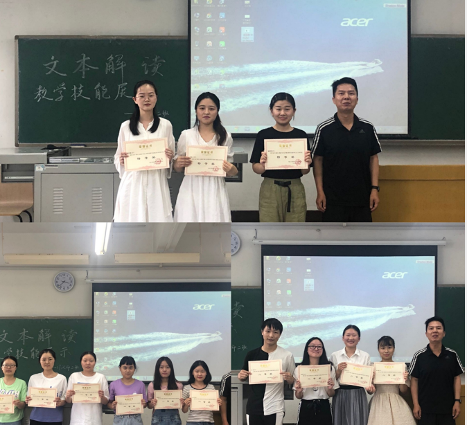 此次教学技能比赛分为文言文教学组、散文教学组、诗歌教学组,参赛选手们根据自己的文体类别依次上台进行展示。随后,两位老师分别进行了针对性点评与总结性发言,指出语文教师的文本解读水平,直接决定一节语文课的教学质量;在一定意义上可以说,一个语文教师对文本解读到什么程度,决定着课上到什么程度;教师自身对文本的解读有怎样的高度,就会引领学生登上怎样的高度。三个组别的学生展示完毕之后,经过评委严格评分,比赛共诞生特等奖6个,一等奖12个,二等奖12个。
