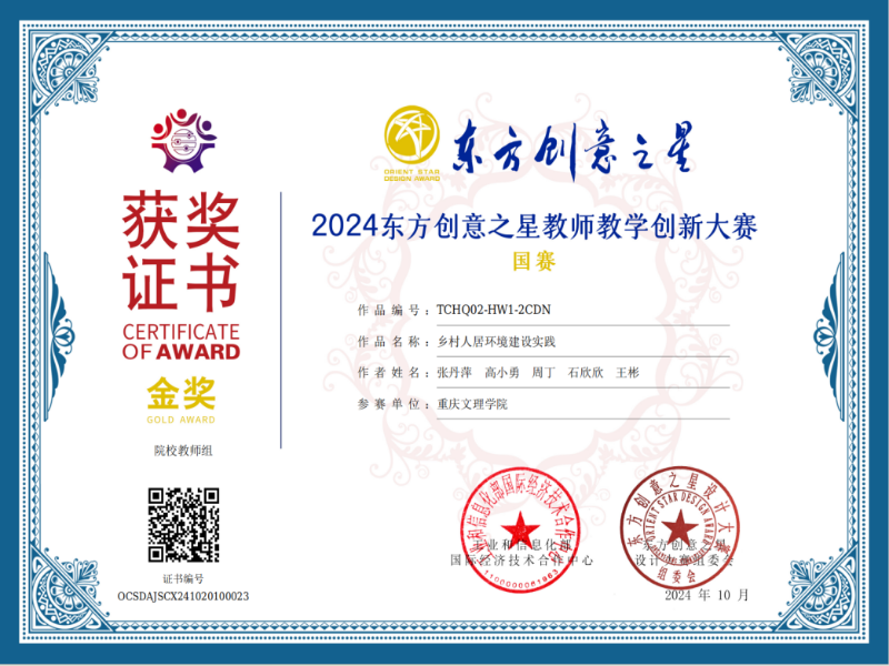 据悉,东方创意之星大赛是由工信部国际经济技术合作中心批复举办的竞赛。目前,教师赛已获得了国内高校的广泛认可,连续多年被纳入《普通高校教师教学发展指数》(2022版、2023版)高校教师教学竞赛目录。本届教师赛分为27个省赛区,采用“校赛、省赛、国赛”三级赛制,来自国内30个省区市,441家单位,1924人的1815件作品进入省赛。来自全国25个省区市的96家单位,共计126位代表参加了线下答辩。经过国赛初评、复评,139件作品获得全国总决赛金奖候选资格;通过线下答辩等终评既定流程,最终决出金奖。