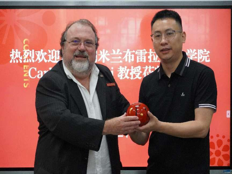 Carlo Pizzichini教授曾担任撒丁岛萨萨里美术学院、佛罗伦萨美术学院、米兰布雷拉美术学院绘画系主任,也在设计艺术学院、意大利设计学院、博洛尼亚美术学院和卡拉拉美术学院教授绘画,是锡耶纳贵族宫Antica Arte dei Vasai奖的发起人及众多艺术展的策展人、日内瓦的国际陶瓷学院ICA的意大利代表、意大利设计学院视觉艺术科学委员会主席。在交流会上Carlo Pizzichini教授分享了自己在艺术创作和艺术教育方面的独到见解和经验,为学院带来了宝贵的学术资源和丰富的国际视野。他表示,布雷拉美术学院将以与学院共建“中意学院工业设计工作室”为起点,持续加强双方的合作交流,引入意大利工业设计优质资源,助力学校建设应用型工业大学。