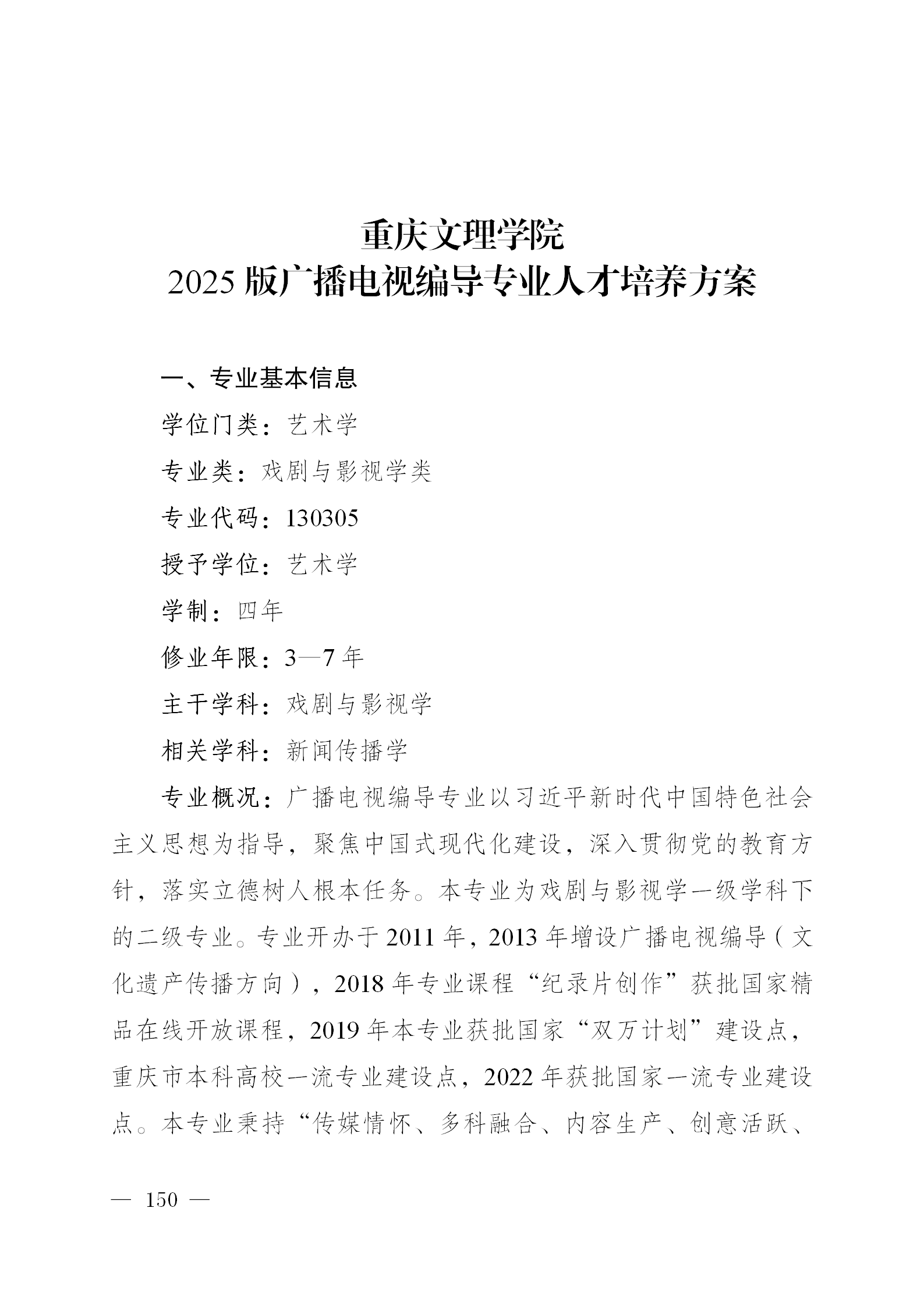 广播电视编导专业人才培养方案(2025版)