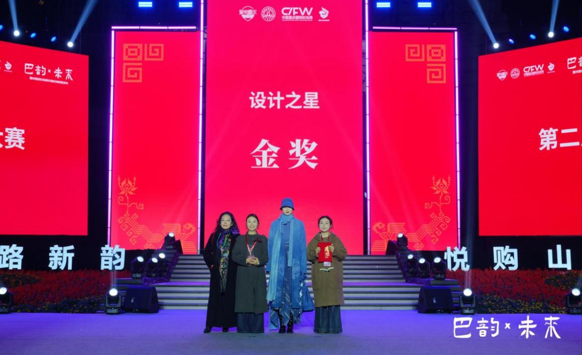 本届大赛是2025重庆(国际)时尚周的重要官方活动,由重庆市非物质文化遗产保护中心、重庆市服装设计师协会等权威机构联合主办,竞争激烈。决赛中,bv伟德官网学子与来自全国的设计力量同台竞技。杨诗婷、刘敏的《花影漫染蓝》以及吴丹的《禧·福临》,均以传统“巫溪嫁花”技艺为核心,融入了现代设计语言与审美思考,其精湛的工艺、独特的创意与深厚的文化内涵赢得了评审团的高度认可。