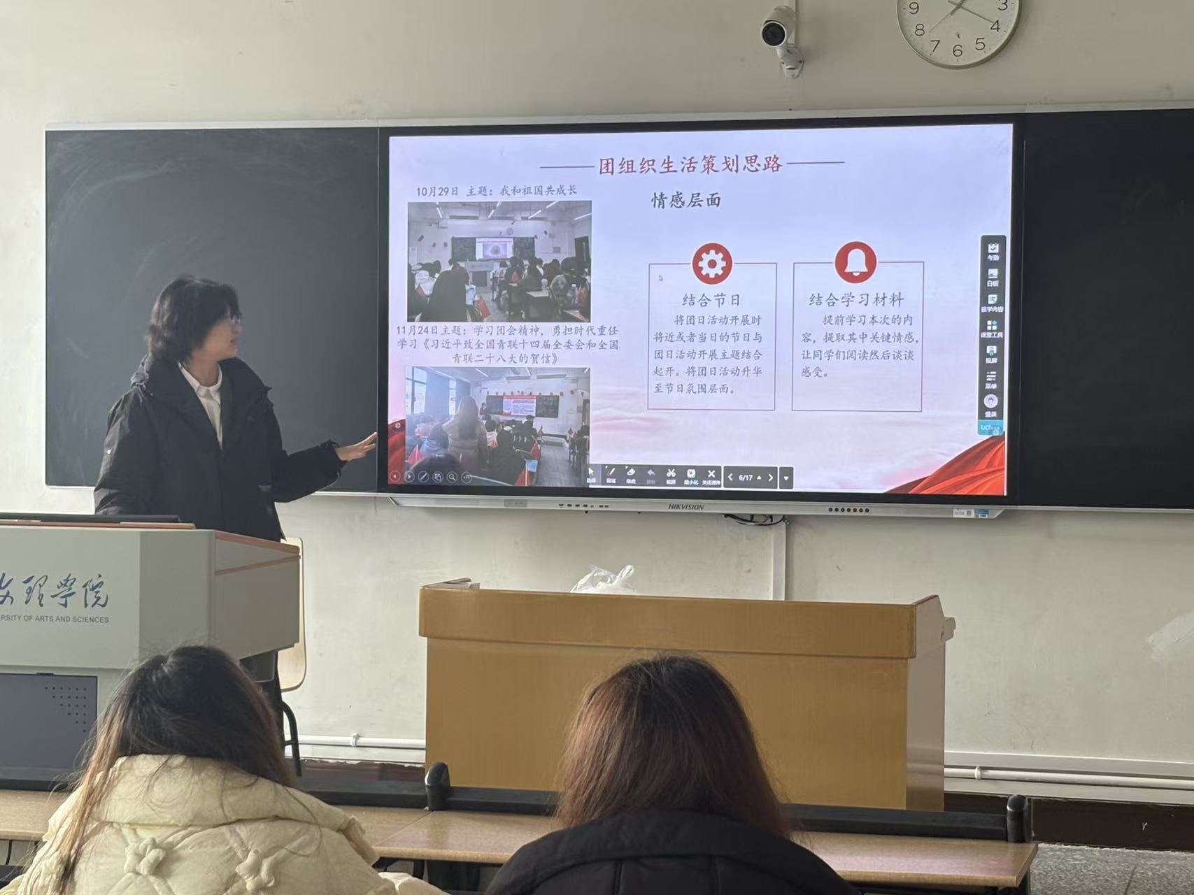 在优秀经验分享环节,学院优秀团支书代表刘娉婷、荣思嘉懿结合自身工作实践,带来了干货满满的经验分享。两位代表从团活主题策划的“破圈思路”、流程设计的“细节把控”、氛围营造的“互动技巧”、团员动员的“精准方法”等多个维度展开详细讲解,重点分享了如何结合文化传播、设计类专业特色,打造兼具思想性与趣味性的团活内容。例如将专业实践、志愿服务与团活主题深度融合,通过小组共创、成果展示等互动形式增强团员参与感,以及如何规范做好活动考勤、资料归档、效果反馈等日常工作。分享过程中,她们还通过案例展示、成果图片分享等方式,直观呈现了特色团活的开展成效,为在场学生骨干提供了可借鉴、可复制的实践样本,现场交流氛围热烈。