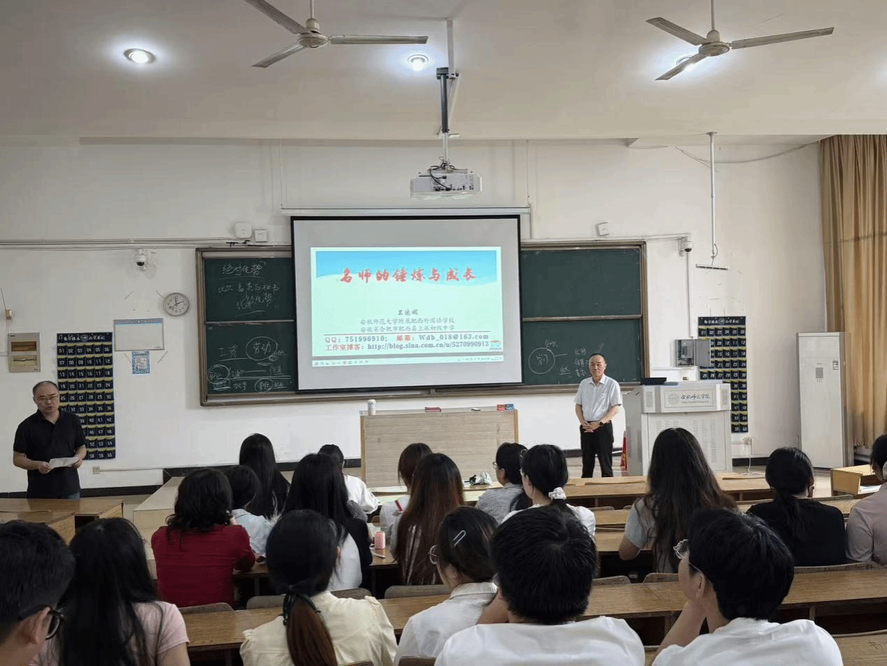 为帮助学生明晰名师成长路径,夯实专业发展基础,9 月 26 日,威廉希尔中文网站邀请学院优秀校友、正高二级教师、国家“万人计划”教学名师、安徽师范大学附属肥西外国语学校数学老师卫德彬在锦绣校区博约楼 108 教室,举办“名师的锤炼与成长”主题讲座。2025级学科教学(数学)全体学生参与讲座,讲座由威廉希尔中文网站院长杨刘主持。